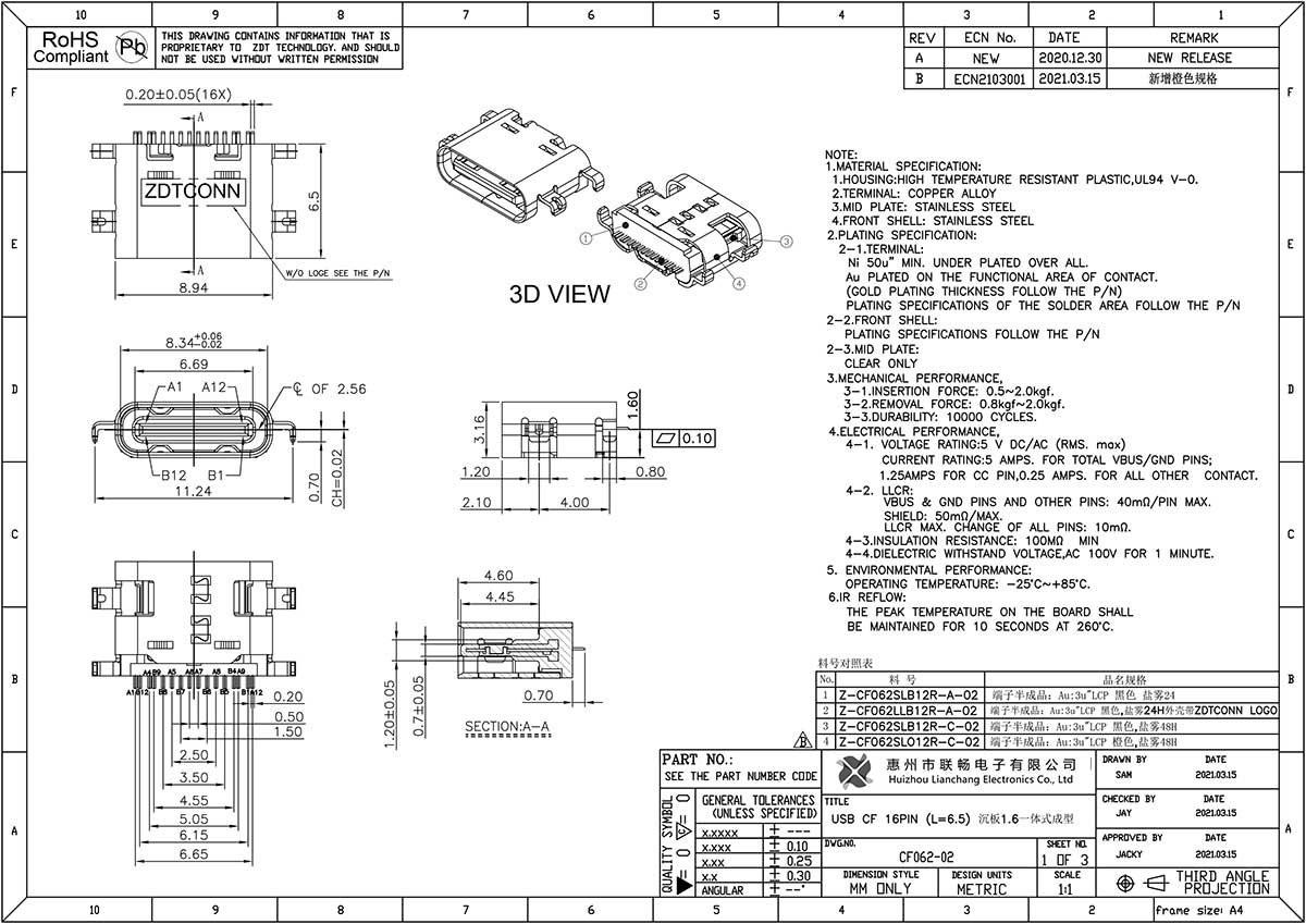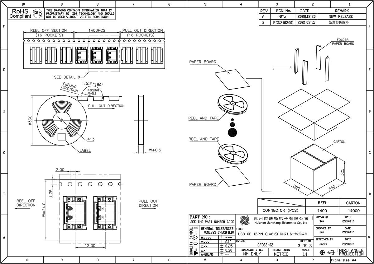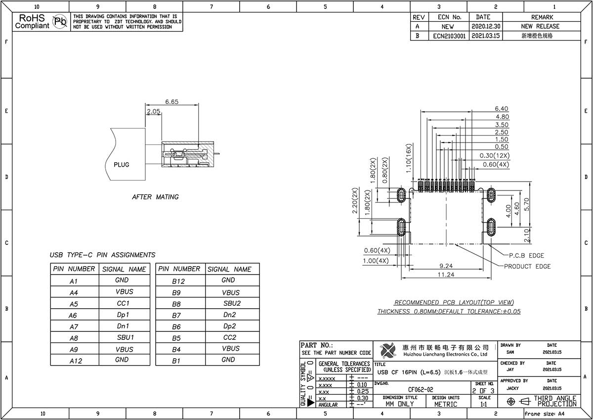 CF062-02(USB CF 16PIN L=6.5 沉板1.6)一体式成型