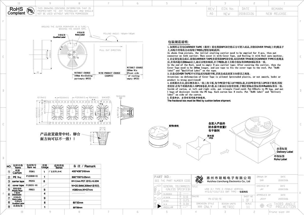 CF101-24-C3 USB 3.1 TYPE C F直立式 H13.0mm SMT TYPE