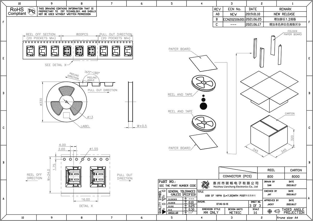 CF146-16-01 USB CF 16PIN (L=7.35)WITH POST外壳带弹片