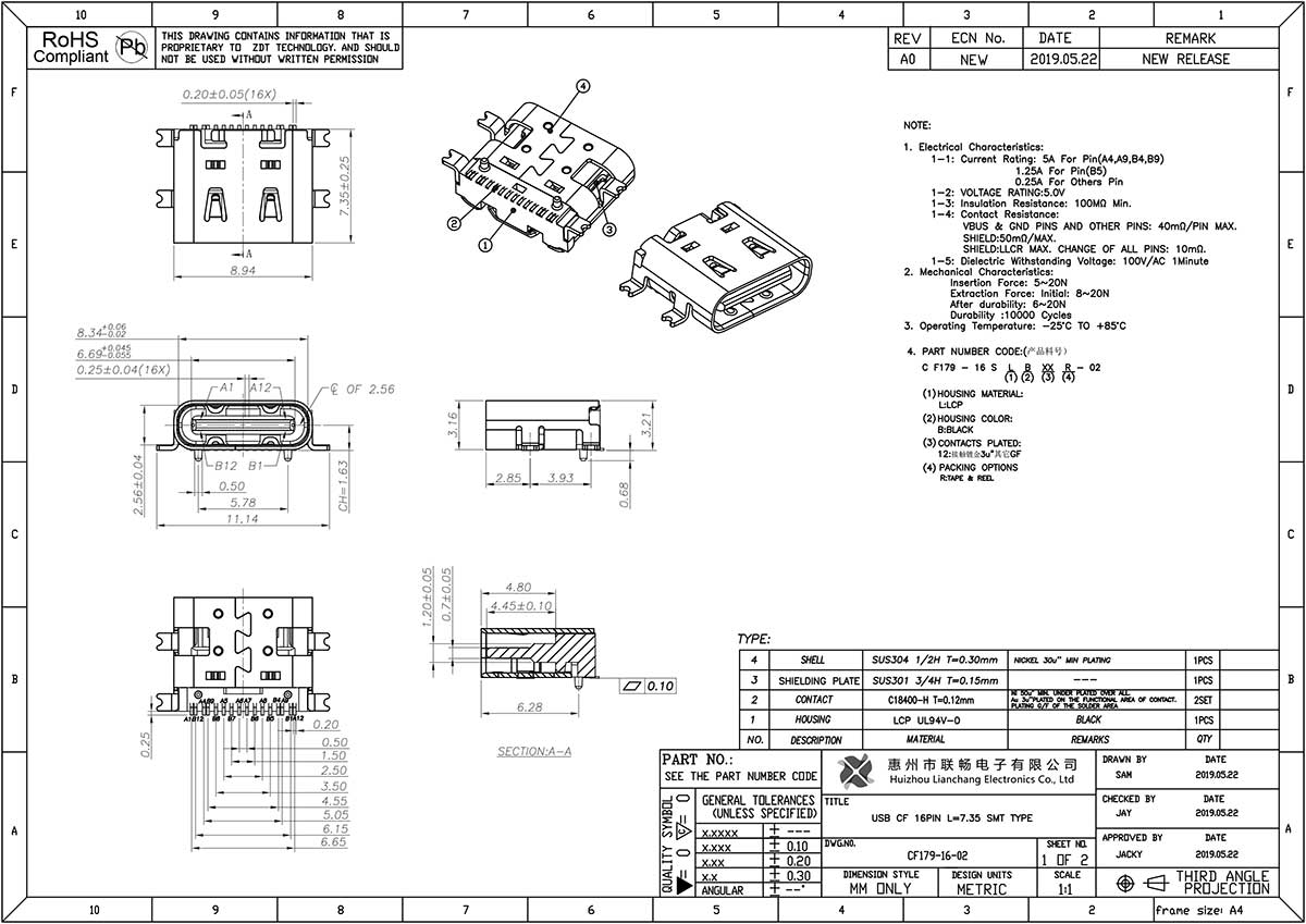 CF216-24-01 USB CF 24PIN 前插后贴带上铁壳三次成型(仿连展款)