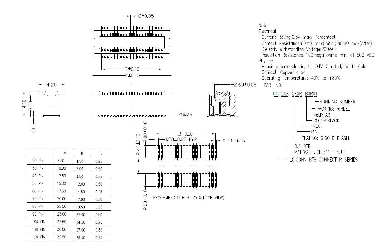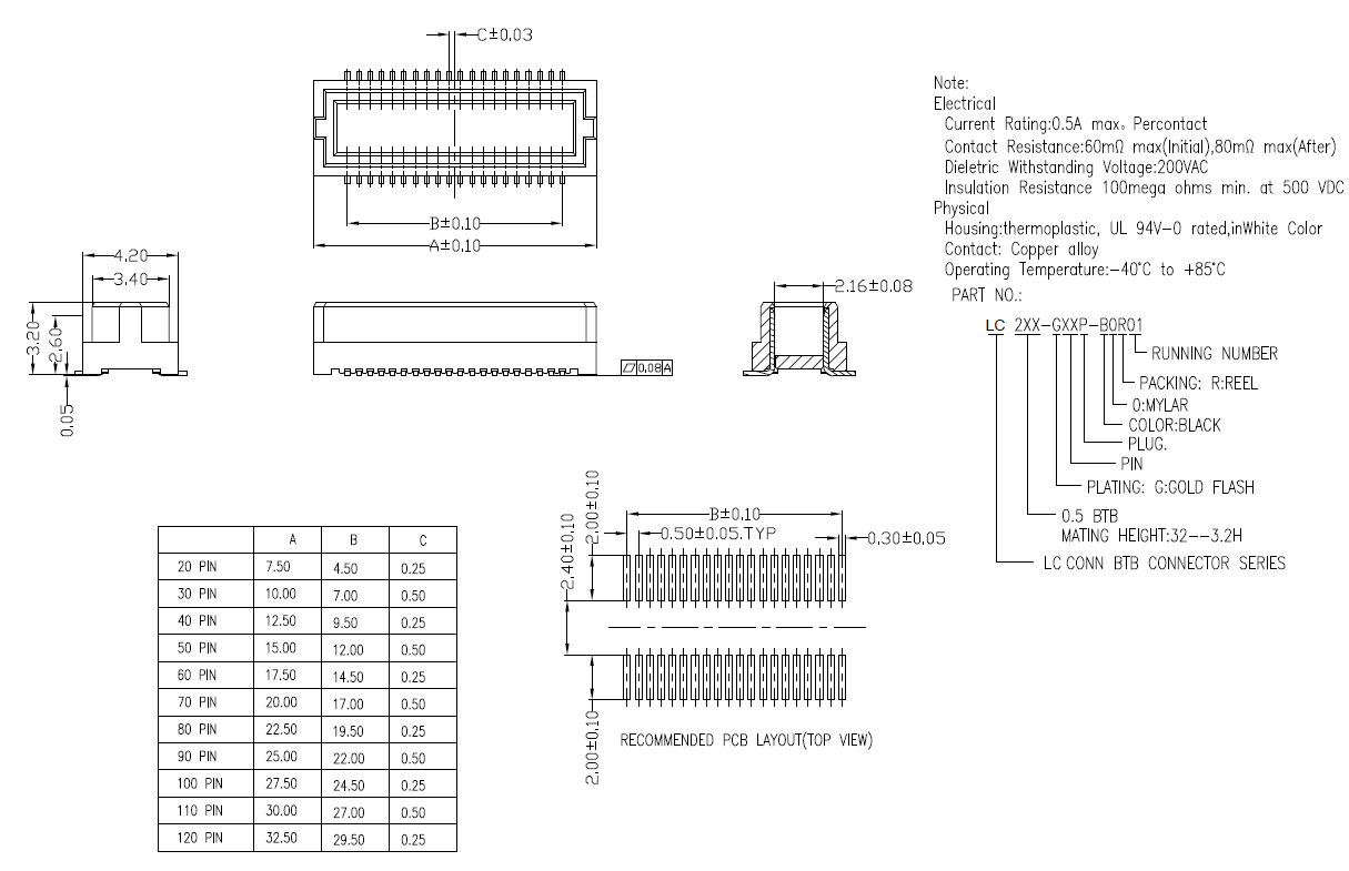 0.8MM pitch High speed board to board connector heightH5.0 (LB342-XXXP-B3R-01)(LB332-XXXS-B3R-01)40 ......