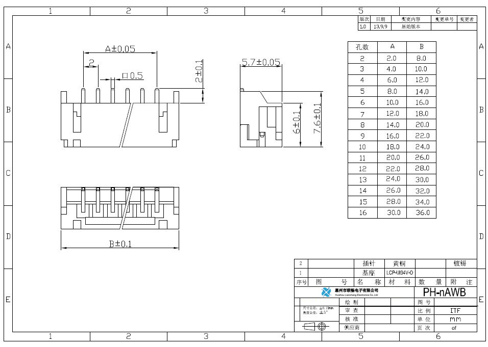 Terminal wire socket with a spacing of 2.0mm and a height of 5.7H, horizontally attached with high temperature resistant WAFER connector 2-16 pins